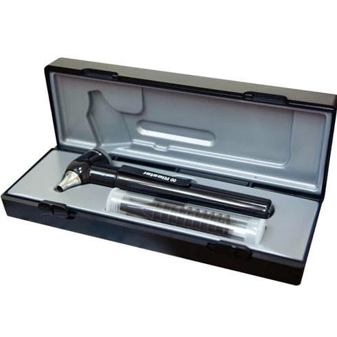 The e-scope® pocket otoscope is lightweight, economical otoscope at a perfect size and weight for you to carry in your pocket all day. The otoscope has AA size handles for use with alkaline batteries (sold separately), a pen clip to easily keep it in place, and LED or Xenon illumination. The instrument comes in a hook and loop closure case with a pack of 10 disposable specula.