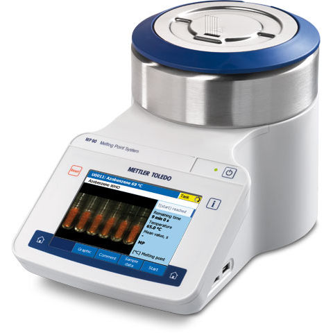 A melting point system is an analytical instrument used to determine the melting point of solid crystalline substances. At the melting point, there is a change in light transmission through the sample, which is automatically detected with METTLER TOLEDO Excellence Melting Point Systems. In addition to melting point, the versatile MP80 Excellence Melting Point System offers automatic determination of further physical properties, such as boiling point, cloud point, and slip melting point.