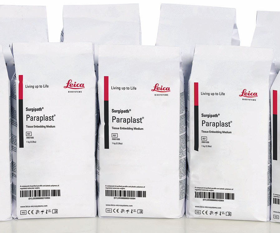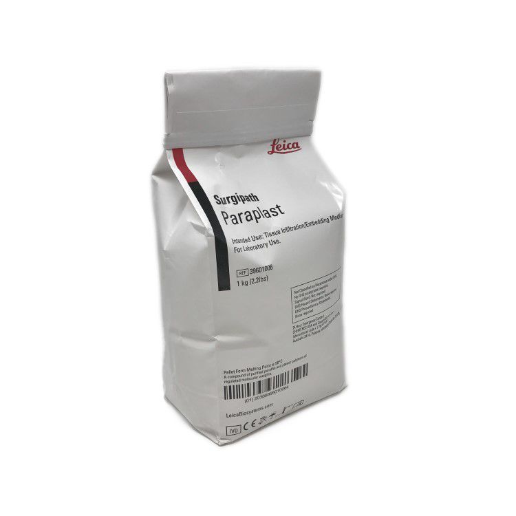 Paraplast is recommended for general tissue embedding. It is composed of a refined mixture of highly purified paraffin containing plastic polymers of regulated molecular weights. This supports improved tissue infiltration and quality sections with minimal compression. Paraplast gives brittle, difficult to section tissue an innate elasticity, promoting wrinkle-free sections.