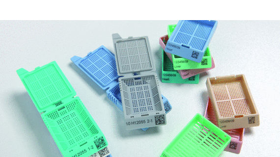The Leica IP C cassette printer uses a resistant ink that prevails against the chemicals used in your histology laboratory. The imprint on each cassette remains readily identifiable throughout the histology process and storage period.