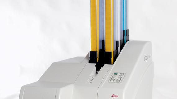 The Leica IP C cassette printer has been designed for versatile printing of tissue cassettes, including cassettes with lids and two different imprint angles.