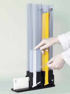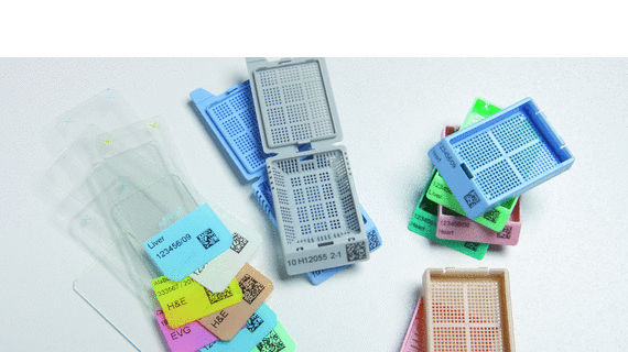 A resistant ink, specially designed for Leica Biosystems, makes imprints durable to chemical exposure and physical wear. Whether alphanumeric characters or 2D-Datamatrix barcodes, the print resolution is always satisfactory with good legibility. A specific advantage of barcode imprints is the possibility to track the sample throughout the complete histology workflow. Additionally, it enables reliable archiving with quick and accurate case identification. An optional external cassette magazine holder is available for easy and convenient loading of pre-taped cassettes.