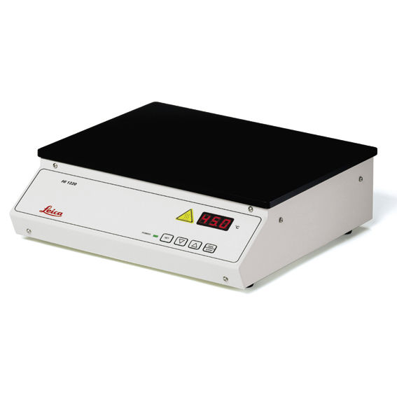 The Leica HI1220 flattening table has a large deep black aluminum work surface to provide high thermal conductivity rates and resistance to mechanical manipulations.