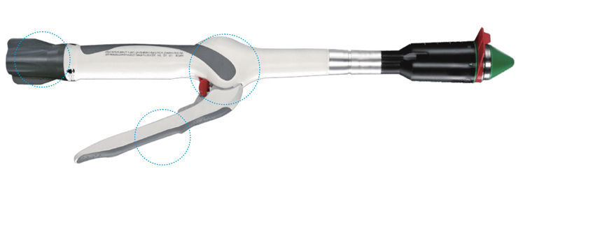 1. Titanium alloy 3D staples provide superior strength to prevent anastomotic fistula. 2. A slim designed anvil puts less strain on the anastomotic site during removal. 3. Two staggered row of staples allows a good anastomosis and haemostatic seal. 4. Firing in the green range delivers a closed staple height appropriate for compressed tissue thickness. 5. Extra-large cartridge volume for more tissue incorporation. 6. Variety of sizes provide more options for the individual patient anatomy requirements. 7. Non-Slip Grip provides improved comfort and control. 8. Audible and visible feedback for better reminding surgeons about fire completion.